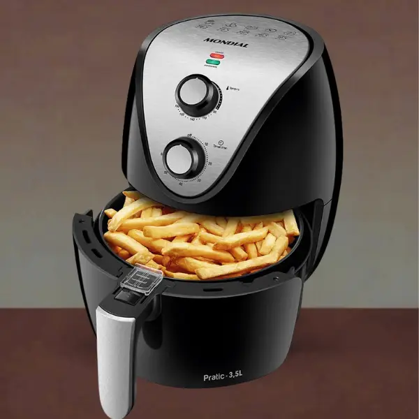 - DESIGN COMPACTO: A Air Fryer Mondial tem um design compacto e ocupa espaço reduzido na bancada da cozinha.